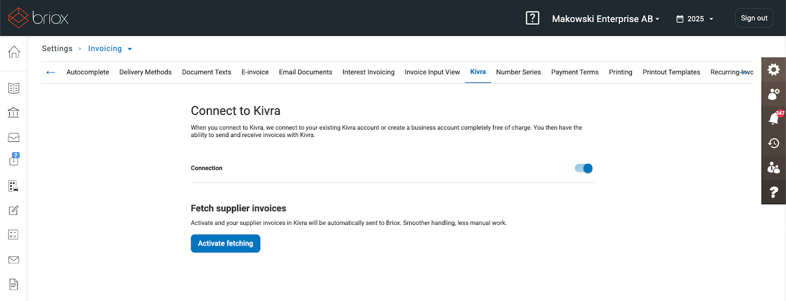 You can now also activate the supplier invoice fetching from Kivra to Briox.