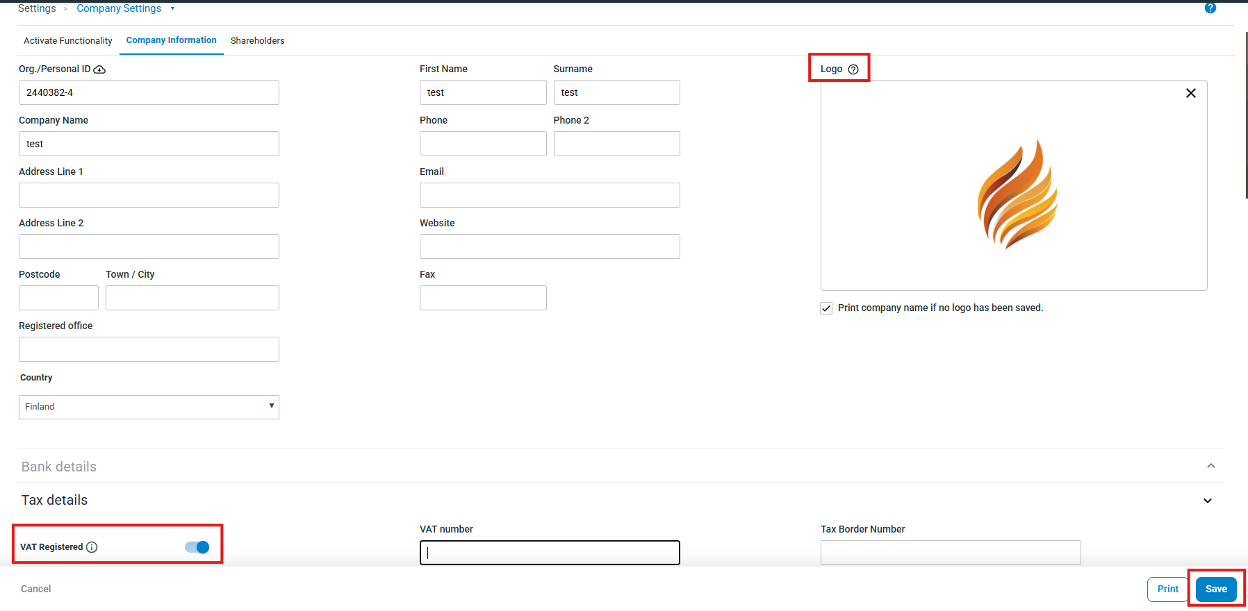 In the section on the right side of the page Settings - Company Settings - Company Information You can check whether the basic information is correct and complete any gaps.