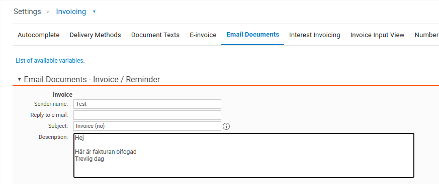 Document Texts – Store predefined texts for invoices, reminders, etc., if you want to use standard wording in the recipient sections.