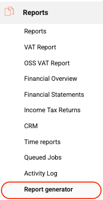 The Generator can be accesses directly from the main left-hand menu under Reports.