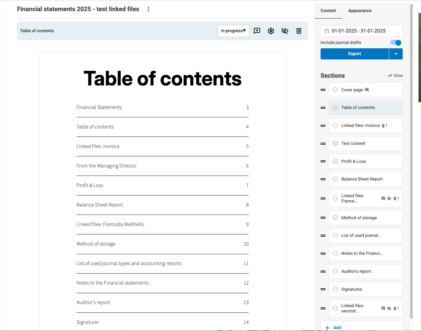 Note: In Preview mode, page numbers in the table of contents are not final and may be incorrect. Page numbers are calculated when the report is generated.