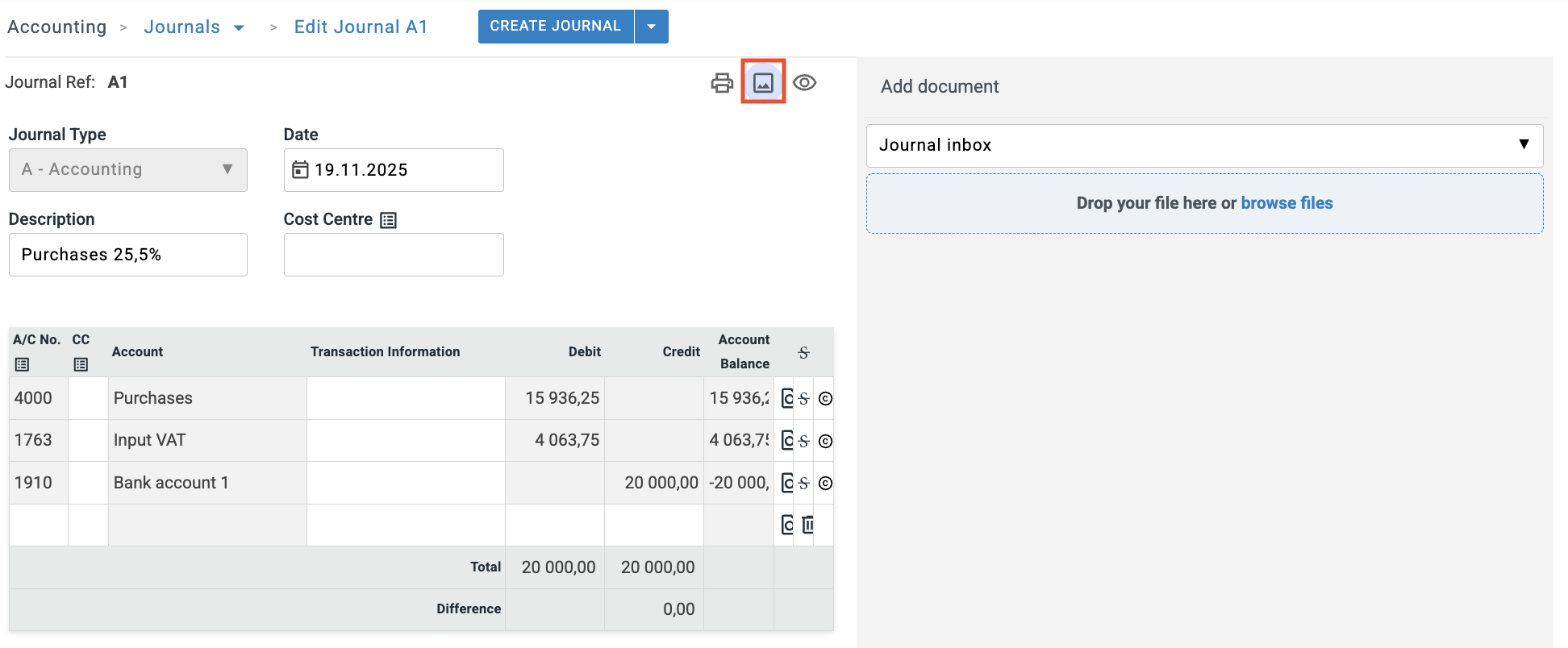 - Use the eye icon to view and print a clean copy of your journal.