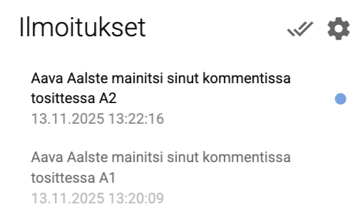 Kaikki ilmoituksesi kerätään myös oikean puolen valikossa kohtaan Ilmoitukset. Punainen merkki kertoo uusien saapuvien kommenttien lukumäärän. Klikkaa ilmoitusta siirtyäksesi suoraan kirjanpitoon.