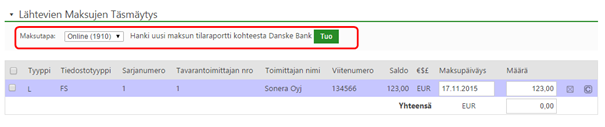 Voit ladata tiedoston pankista tai saada online-ilmoituksen käyttämästäsi maksutavasta riippuen. Saat ilmoituksen/ilmoituksia pankistasi napsauttamalla Tuo.