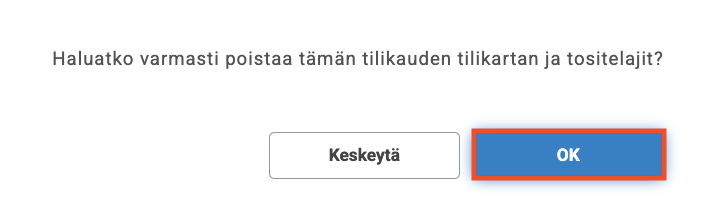 Paina OK poistaaksesi tilikauden.