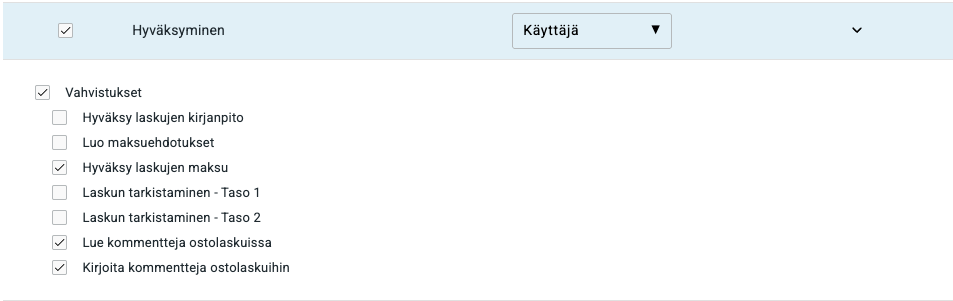 - Loppukäyttäjä tai kirjanpitäjä siirtää hyväksytyt ostolaskut maksuun.