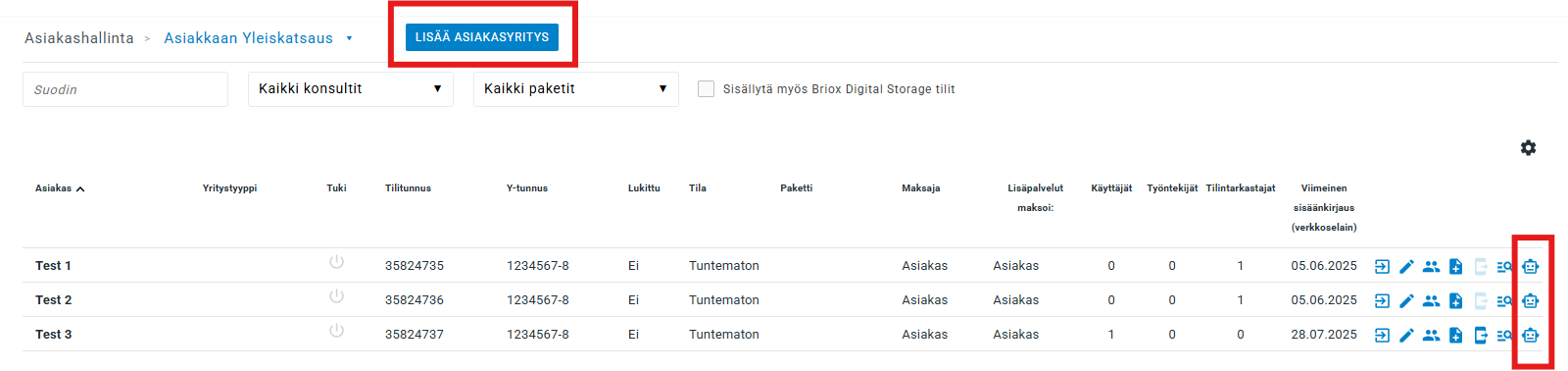 Nykyisten asiakkaiden kohdalla voit kopioida robotteja asiakashallinnan listalta.