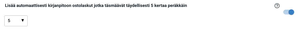 Ostolaskujen tulkintaan voi asettaa vaaditun määrän täydellisiä täsmäyksiä, esimerkiksi viisi, joiden tulee täyttyä, ennen kuin järjestelmä saa kirjata laskun automaattisesti.