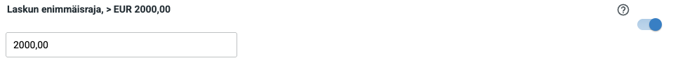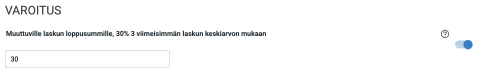 Jos laskun summa poikkeaa yli X % (positiivisesti tai negatiivisesti) verrattuna saman toimittajan kolmeen edelliseen laskuun, laskua ei kirjata automaattisesti, vaikka kaikki muut vastaavuuskriteerit täyttyisivät. Lasku korostetaan tarkistusta varten. Massahallinnan kautta kirjaaminen on kuitenkin sallittua.