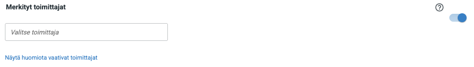 Merkittyjen toimittajien kohdalla käytä automaattisen täydennyksen kenttää valitaksesi toimittaja ja lisää se merkittyjen toimittajien listalle