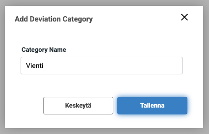 - Avautuvassa ikkunassa syötä kategorialle haluamasi nimi. Tallentamisen jälkeen kategoriaa voidaan käyttää valitun toimittajan kohdalla.