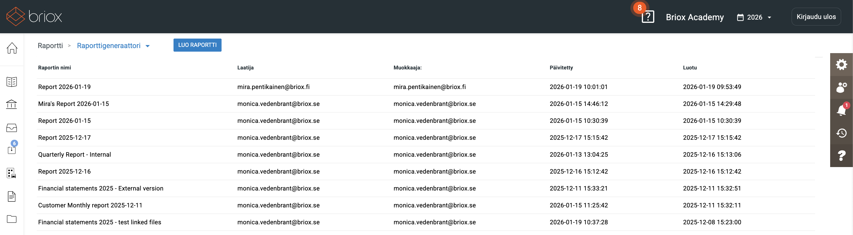 Raporttigeneraattorin avulla pienet ja mikroyritykset voivat luoda ammattilaistason raporttipohjia monenlaisille raporteille, mukaan lukien tilinpäätökset, suoraan Brioxissa.
