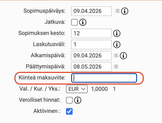 Syötä kiinteä maksuviite sopimukseen, kun se määritetään.