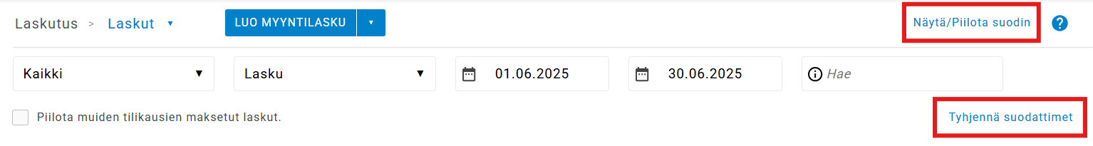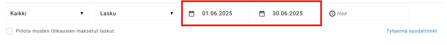 - Valintaruutu: Piilota muiden tilikausien maksetut laskut.