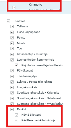 ja rastittamalla valinnan Pankki (kohdassa Kirjanpito - katso kuva alla).