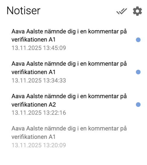 Klicka på notisen för att komma direkt till verifikationen. - Notiser markeras som lästa och blir gråa när någon av länkarna ovan har använts.