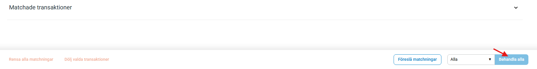 Alla matchade transaktioner hittar du längst ner på sidan i avsnittet Matchade transaktioner. Du kan bearbeta alla transaktioner i listan samtidigt med kommandot Hantera alla som finns längst ner på sidan.