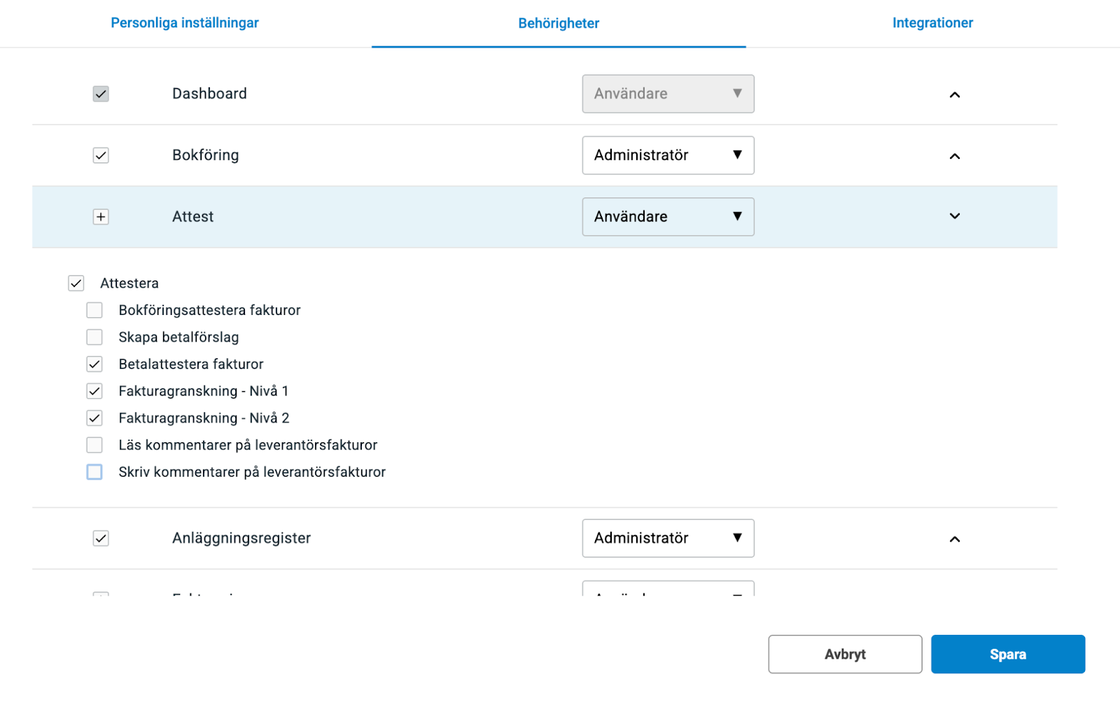 För att kunna attestera leverantörsfakturor i appen behöver användaren ha rättigheter kopplade till attest. Minst en relevant gransknings- eller attestnivå behöver vara aktiv.